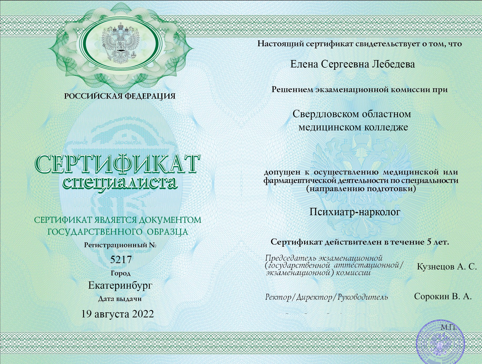 Елена Сергеевна Лебедева врач нарколог клиники доктора Стукаловой в Первоуральске